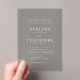 Esta invitación a la boda muestra un diseño elegante y formal, perfecto para una ceremonia sofisticada. La invitación presenta una estética minimalista, con líneas depuradas y un enfoque en la tipografía. Los nombres se muestran de forma prominente en una fuente serif clásica, lo que da un aire de gracia eterna a la pieza. El uso de una simple ampersand o "to" entre los nombres añade un toque de simplicidad moderna. El texto está bien organizado sobre un fondo de papel texturizado, lo que mejora el aspecto formal general. En la parte inferior de la invitación se incluye un guión con estilo característico, que indica un toque personal. Esta plantilla, para un boda en un jardín botánico, combina la tradición con la elegancia contemporánea, lo que la convierte en una elección ideal para parejas que buscan una invitación refinada y elegante.
