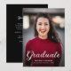 Invitación formal negra elegante con foto para fiesta de graduación.