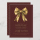 Invitación Formal Holiday Dinner Party Gold Satin Bow Marsala