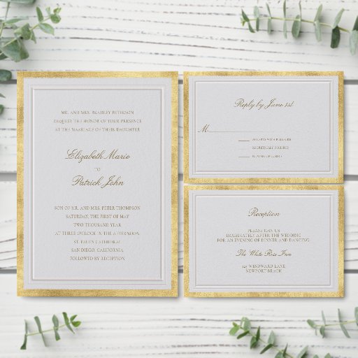 Invitación Formal Modern Classic Elevated Gold Ivory Wedding