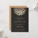 Festivo pero sofisticado con un toque glamuroso. Imagen digital realista de fondo de lino negro rico y parte posterior naranja bronceado dan un sentimiento rico, sofisticado y elegante. Hermosa esfera con patrón de círculo de falso foil dorado. Ideal para bodas por la noche, eventos corporativos y de corbata negra, fiestas de cumpleaños y jubilación, fiestas de despedida de soltera, fiestas de club y baile y más. Personalice fácilmente la parte posterior al color deseado. Chic y elegante con un toque contemporáneo.