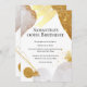 Un diseño versátil y fácil de personalizar que presenta formas abstractas brillantes en oro y rosa marfil pastel que tiene manchas de oro falsas y purpurina esparcidas por todas partes. Un vibrante trazo de pincel de acuarela de oro falso aparece a lo largo del borde superior y una línea geométrica a lo largo de la parte inferior. Estas invitaciones modernas, trendy y contemporáneas son ideales para fiestas de cumpleaños importantes o de cualquier edad; eventos de cóctel, compromiso, boda y cena.