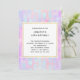 Invitación de fiesta de cumpleaños con un patrón de fondo abstracto. Las acuarelas rosas moradas y azules componen este diseño artístico que presenta formas rectangulares verticales sobre un fondo suave de mosaico.