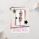 Una fiesta de cumpleaños temática de la moda que incluye un ilustracion de una estampada de leopardo y una forma de vestir rosa delante. Personalice con detalles de su ocasión en frente y detrás.