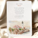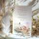 Invite a sus huéspedes a una encantadora celebración costera con esta hermosa invitación a bodas acuáticas con la icónica Luz de la Cabeza de Portland en el Cabo Elizabeth, Maine. La obra de arte captura exquisitamente la histórica torre blanca del faro con su habitación de farolillos negros y la casa de un guardián de techos rojos, todas encaramadas sobre acantilados rocosos y escarpados. La escena se representa en un suave y romántico estilo acuático, con las serenas aguas azul-grises del Atlántico que se unen a los marrones terrenales, los marrones rojizos y los grises de los acantilados. Un cielo suave y atmosférico en tonos suaves completa esta pintoresca vista de Nueva Inglaterra. Esta invitación es perfecta para un boda de temática náutica, una celebración en Nueva Inglaterra o para parejas que aman el encanto atemporal de la costa. El frente presenta con elegancia los detalles de su boda, mientras que el reverso ofrece "Los detalles más finos" para más información. La paleta de colores está compuesta por blancos clásicos, rojos vibrantes de los techos, marrones y terracota de los acantilados, azules serenos y suaves tonos de cielo atmosférico.