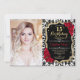 Invitación Foto 15th Birthday Party Red Gold Black Damask