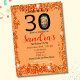 Una glamorosa invitación para la fiesta de cumpleaños número 30. Purpurina de bolas que se aferran para hacerla sentir brillante. Personaliza con una foto y detalles del fiesta que vas a arrojar para el invitado de honor.