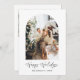 Esta hermosa tarjeta de vacaciones felices con estilo moderno y elegante presenta un marco de foto arqueado con caligrafía moderna y un diseño minimalista. ¡Edite fácilmente la mayoría de las palabras para que coincidan con su mensaje de vacaciones deseado! ¡Fácil de personalizar en color, texto y fotos!