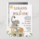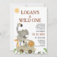 Fotografía de los chicos de los autobuses de Safari Wild One Birthday Invitation Cute la invitación al primer cumpleaños del chico con temática de safari que incluye varios adorables animales de la jungla, un autobús, sol y algunos follajes de la jungla. Esta invitación salvaje de un cumpleaños se puede usar para cualquier edad y es para una fiesta de cumpleaños con temática de safari. La foto de tu pequeño aparece en la parte de atrás.