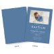 Tarjeta de invitación para el bautismo de travesía religiosa con foto azul personalizada.