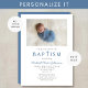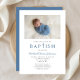 Tarjeta de invitación para bautismo de travesía azul, foto religiosa personalizada.