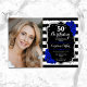 Invitación Foto Black Silver Royal Blue 50 cumpleaños