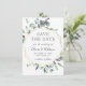 Crea la invitación de boda perfecta con esta plantilla de "Invitación de GUARDA LA FECHA de Boda Floral de Eucalipto Moderno".