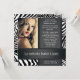 Impresión de cebra en blanco y negro de bonito personalizada con la foto de su foto Quinceanera invitaciones. Personalizar añadiendo su imagen al frente y con su elección de estilo de fuente, color de fuente, redacción y diseño.