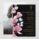 Invitación Foto conmemorativa cristiana floral rosa funeral