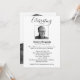 Una moderna y clásica celebración de la invitación a la vida con un toque de elegancia. Un refinado borde de plata falsa texturada rodea una foto frontal de tu ser querido. Los detalles de la reunión están debajo de la foto con amplios portatexto para su modificación. La parte trasera de la tarjeta es una simple foto de keepsake.