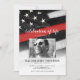Celebre la vida heroica de un bombero caído con esta significativa Invitación Memorial para Funeral de Bombero. Diseñada cuidadosamente para honrar la valentía, el sacrificio y el espíritu patriótico, esta invitación presenta la majestuosa bandera de los Estados Unidos y la icónica línea roja delgada, un símbolo de la profesión de bombero.