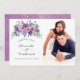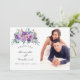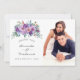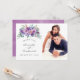 Tarjetas de foto de agradecimiento de boda de flores púrpuras en un ramo pintado a mano diseñadas para ser personalizadas rápida y fácilmente para tu día especial.