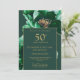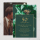 Esta elegante invitación de boda de 50 años con flores verde esmeralda se puede personalizar con su información en tipografía moderna y una foto especial en el reverso. Diseñado por Thisisnotme©