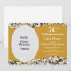 Esta invitación de aniversario de bodas de 50 años presenta un patrón de damasco con remolino negro como fondo, y una franja dorada ondulada en el centro y el marco de foto personalizable. El texto personalizable le permite agregar los detalles de su invitación.