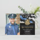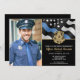 Honren la dedicación y el duro trabajo de un nuevo agente de la policía con esta invitación a graduarse de la policía personalizable. Con una insignia de la policía y una bandera de la fuerza policial con audaces rayas blancas y negras y una orgullosa delgada línea azul, este diseño simboliza fuerza, servicio y sacrificio. La invitación se personaliza con el nombre del graduado y los detalles de su fiesta, lo que lo convierte en un recuerdo memorable para amigos, familiares y colegas. Perfecto para celebrar la graduación, promoción o hito de una academia de policía en la carrera de un futuro oficial. Invite a sus invitados con estilo y muestre su apoyo al miembro más nuevo de la comunidad de la delgada línea azul. Personalizar aún más lejos con una foto del oficial graduado.