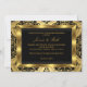 Invitación de aniversario dorada y negra. Elegante lazo de joya negra y diseño de damasco dorado. ¡No tienen joyas ni lazos reales!