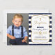 Celebra el bautismo de tu pequeño con esta moderna invitación de la marina y la falsa invitación de la foto de oro.