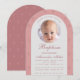 Invitación Foto de Bautizo de Niña Arco Polvoriento Rosa Mode