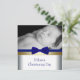 Invitación Foto de Bautizo de Niño en Azul Real y Dorado