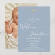 Invitación Foto de Bautizo Moderno Polvoriento Azul