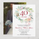 Con una delicada guirnalda floral de acuarela verde, esta elegante invitación botánica para el 40º aniversario de boda se puede personalizar con la información de su aniversario rubí especial. El reverso presenta su foto de boda favorita. Diseñado por Thisisnotme
