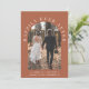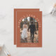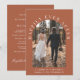 Invitación moderna de terracota para fuga y anuncio de boda privada y recepción. La parte delantera presenta su foto de boda en un marco arqueado y "Happily Ever After" en tipografía blanca elegante. Agregue sus nombres, fecha de la boda y ubicación. En el reverso, personalice su anuncio de boda y la invitación a la recepción y agregue sus nombres en una escritura similar a una firma.