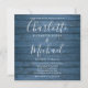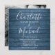 Con elegantes nombres de estilo característico sobre un fondo azul de madera rústica, junto con la foto que ha elegido al revés, esta elegante invitación a la boda se puede personalizar con los detalles de la celebración de su boda. Diseñado por Thisisnotme©