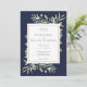 Invitación Foto de Boda de Hojas Verdes Azul Marino