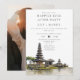 Esta elegante invitación de boda con templo de Bali en acuarela para fiesta de para siempre feliz puede ser personalizada con tu información en tipografía chic y foto especial en el reverso. Diseñada por Thisisnotme©