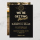 Invitación Foto De Boda Groovy De Retro Negro Y Oro