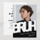 ¿Estás listo para celebrar el cumpleaños de tu hijo adolescente? Entonces echa un vistazo a estas invitaciones de cumpleaños de niño geniales y actuales. Con una foto de tu hijo, la palabra de jerga 'HEY BRUH' en una tipografía moderna y en negrita y la frase '¿Música, comida, bebida, tú estás dentro?'. En el reverso hay una plantilla de fiesta moderna en blanco y negro que es fácil de personalizar.