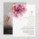 Esta elegante invitación de celebración cristiana de la vida floral rosa en acuarela y recuerdo puede ser personalizada con su información en tipografía moderna y foto en el reverso. Diseñada por Thisisnotme©