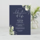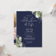 Una elegante invitación de recuerdo de celebración de la vida floral verde botánico personalizado acuarela en azul marino. Diseñado por Thisisnotme©