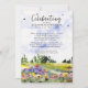 Honra a tu ser querido con esta hermosa invitación de celebración de la vida. El frente presenta un campo pintado a mano con acuarela con pinos, hermosas flores silvestres, aves volando y detalles personalizados de tu celebración. La parte trasera ofrece espacio para una foto y un poema o escritura (o eliminar). La plantilla es muy fácil de usar y cambiar - crea una invitación única y hermosa que será apreciada por siempre.