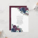 Invitación de Celebración de la Vida floral de rosas y peonías en acuarela blanca, azul y bordo con tipografía elegante personalizable a los detalles de su evento.