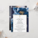 Esta elegante invitación azul marino y dorada con flores para la celebración cristiana de la vida y el recuerdo se puede personalizar con su información en tipografía clásica y una foto especial en el reverso. Diseñada por Thisisnotme©