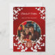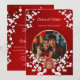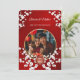 Esta elegante invitación a una boda china incluye una foto redonda rodeada de ramas blancas de flores de cerezo y un símbolo redondo de doble felicidad dorado sobre un brillante fondo rojo floral. Nombres de novias y novios en un elegante guión clásico. Invitación a la boda o a la ceremonia del té en China.