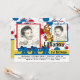 Animación fotográfica de circo brillante y colorida para cualquier ocasión. Colores primarios audaces con mucho espacio en la parte delantera y trasera para obtener detalles fiestas. Personalizable para dos fotos.
