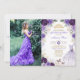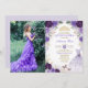 ¡La invitación perfecta para la quinceañera de tu hija está por fin aquí! Esta moda y encantadora invitación a la quinceañera cuenta con elegantes rosas color agua morado, un brillante vestido de princesa lavanda, una tiara purpurina de oro y dos mariposas revoloteadoras. Haga clic en el botón "personalizar adicional" si desea reorganizar y formatear el estilo y la ubicación del texto.