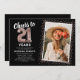 Celebra el gran hito de cumplir veintiuno con nuestras elegantes invitaciones para fiestas de cumpleaños. Con un fondo negro a la moda en personalizable, un lugar fotográfico personal y un subió acento dorado, estas invitaciones seguramente dejarán una impresión duradera. Los detalles del rosa de los globos de helio de oro añaden un toque de magia, mientras que la plantilla de texto de 21 años es fácil de personalizar. ¡Porque el estilo no tiene límite de edad!