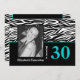 Invitación Foto de cumpleaños 30 de la huella de cebra azul b
