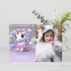 Invitación Foto de cumpleaños de unicornio sobre el arcoiris