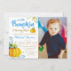Invitación a foto de cumpleaños del niño de la caída de la calabaza azul