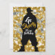 Diseño de la fiesta de cumpleaños Hip-Hop de los años 90 con una silueta masculina de hip hop que usa pantalones holgados, una capucha suelta, una gorra de béisbol atrasada y zapatillas de alto nivel sobre un brillante fondo purpurina de oro. ✨. Resaltado con texto en negrita: ¡Vamos cortos, ya es cumpleaños! ¡Añade un toque personal con tu foto en la parte posterior! En el reverso se exhibe una pared de ladrillo negro con vibrantes pinturas de graffiti para una auténtica 🎶 de 🎤 callejera. Diseñado por ©2025 Miss Fiesta Sassy Diseños."